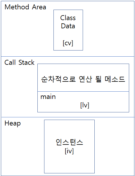 :: 인스턴스가 생성되는 공간. 프로그램 실행 중 생성되는 인스턴스는 모두 이곳에 생성된다. 즉, 인스턴스 변수(iv)들이 생성되는 공간.