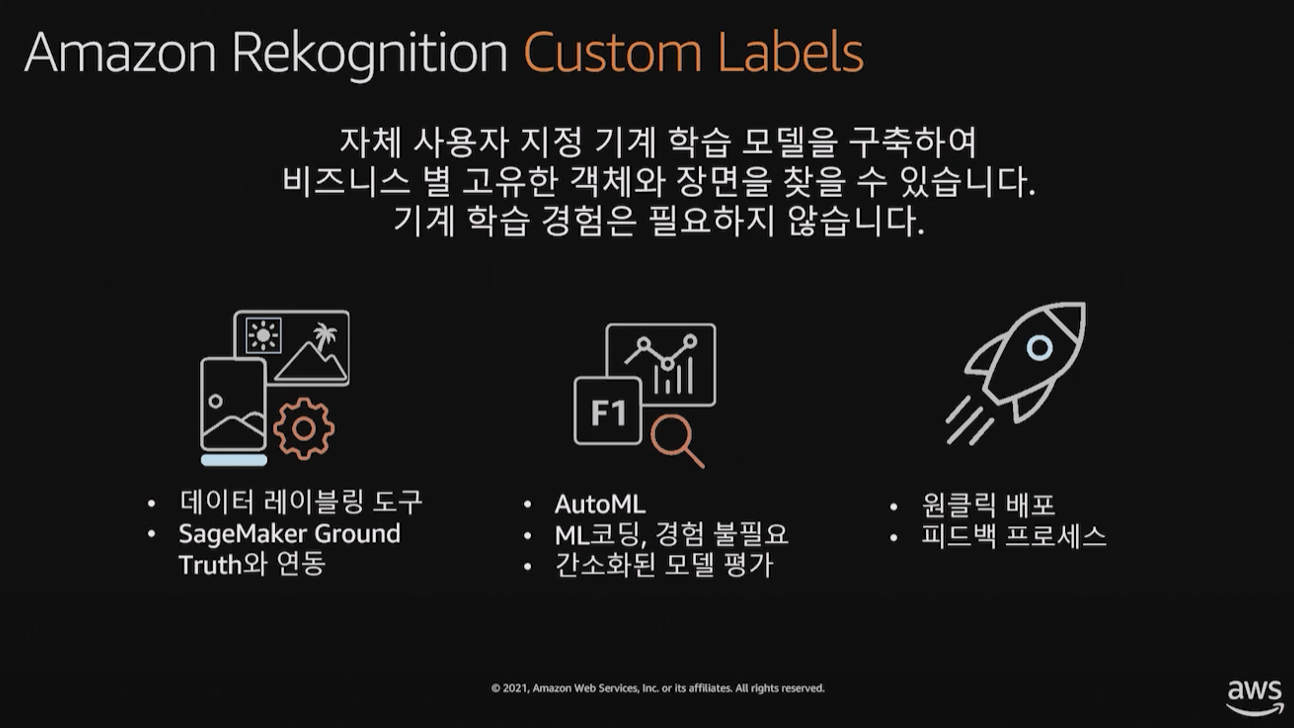 g. 사용자만의 머신러닝 파이프라인 완성(Rekognition Custom Label Proccess 그림 참조)