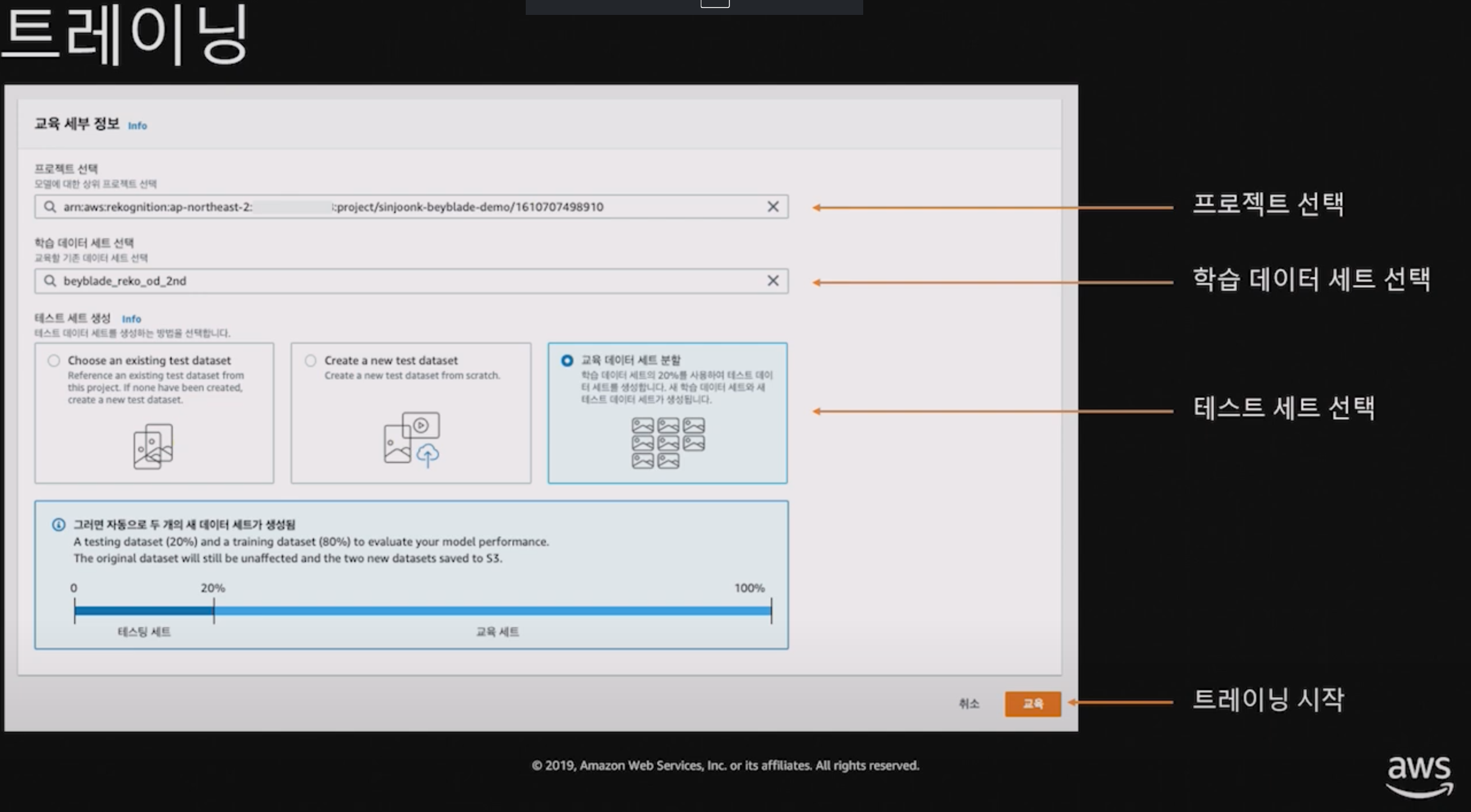 - 학습 데이터 세트, 테스트 세트 분할(AWS Rekognition 동영상 참고)