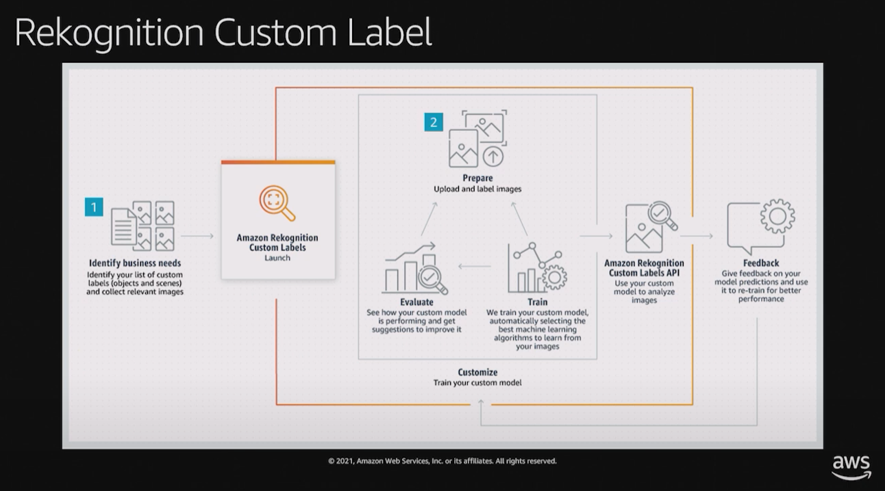 기계 학습 경험이 없어도 나만의 컴퓨터 비전 모델을 만들 수 있는 Rekognition의 특화 기능.