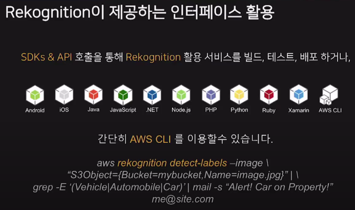 Rekognition은 현재 거의 모든 SDK의 플랫폼을 제공하고 있다. CLI로도 이용할 수 있다. 이를 통해 애플리케이션을 만들면 되는데 몇 가지 주의 사항이 있다.