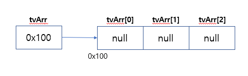 Tv tv1, tv2, tv3 → Tv[] tvArr = new Tv[3]; // 길이가 3인 Tv타입의 참조변수 전달